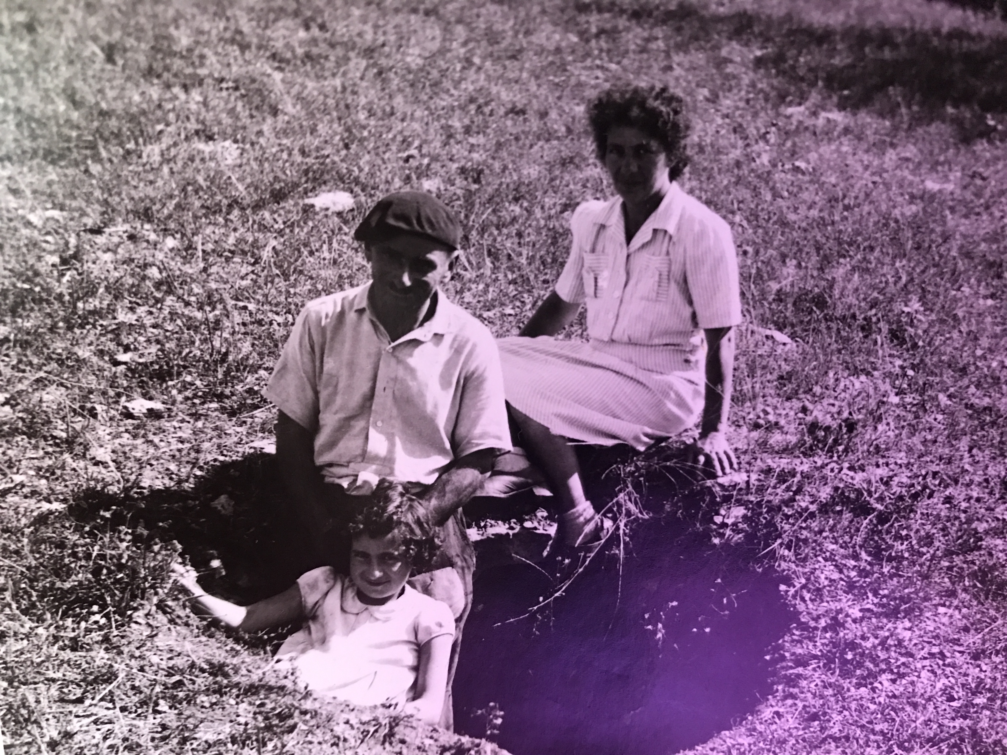 Previous Image Next Image Lucy, Emma and Alfred Hammel. Lucy Hammel with her parents, Emma and Alfred posing in the hole in which they hid on the farm in 1944.