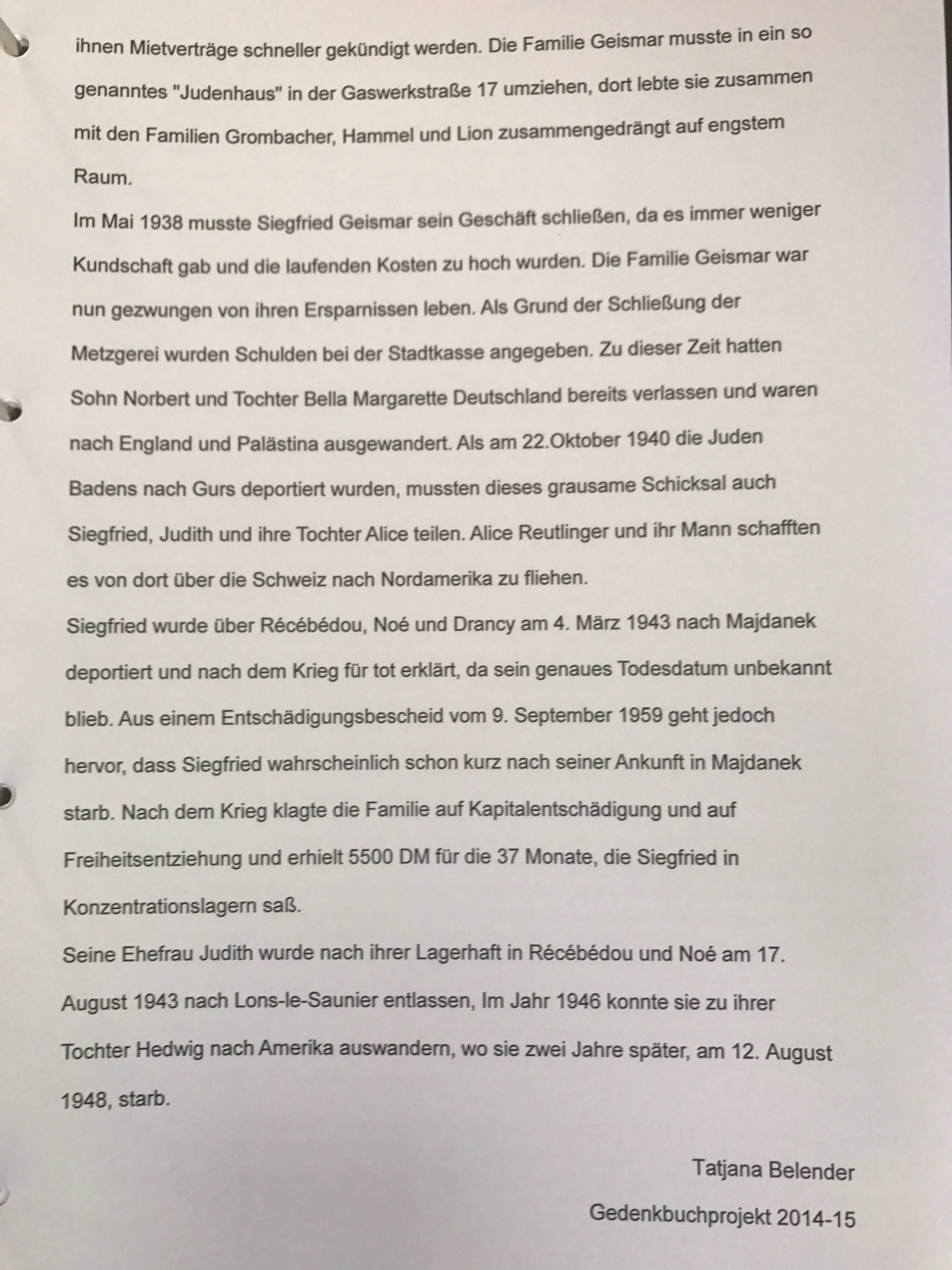Offenburg, Germany. Hometown of my grandmother Alice Geismar Reutlinger and her three siblings, and my great-grandparent’s shop- Metzgerai Sieg. Geismar.